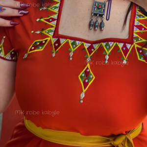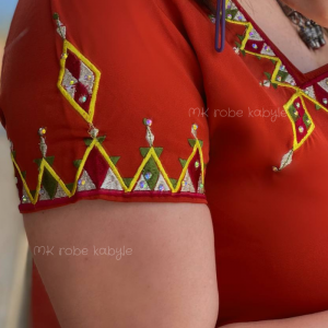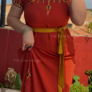 Robe kabyle – Broderie carrée – Rouge brique